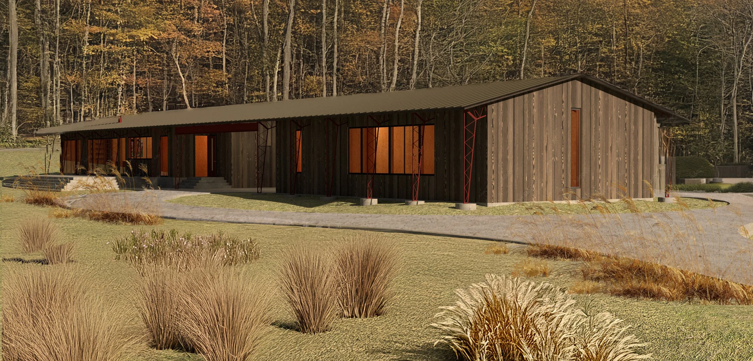 Early on we became inspired by the layout possibilities of an open sided clear span steel building kit. In essence the home is two distinct volumes housed beneath a single superstructure.